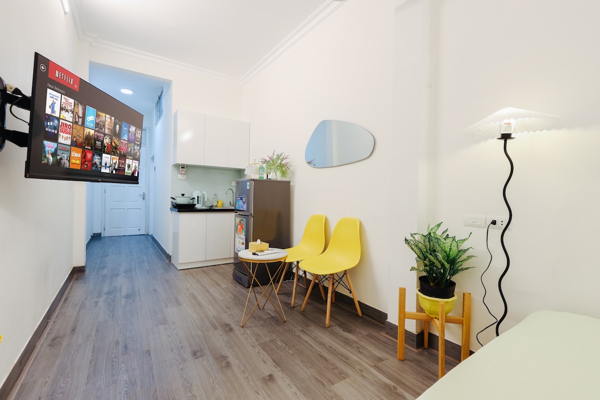 Dobro došli da uživate u ovom mirnom smještaju koji se nalazi u centru grada. Stan se nalazi u okrugu Hoan Kiem, udaljen je 15 minuta hoda do jezera Hoan Kiem i traje od 20-30 minuta hoda do stare četvrti Hanoja. Prirodno svjetlo, veliki prozor u kojem možete uživati u prozračnoj atmosferi izvana jer ispred stana postoji prazan prostor. Unutra je udobno i dobro opremljeno, uključujući kompletne kuhinjske aparate, fen za kosu, brzi Wi-Fi, TV, frižider itd. Mašina za pranje i sušenje veša izvan prostorije.