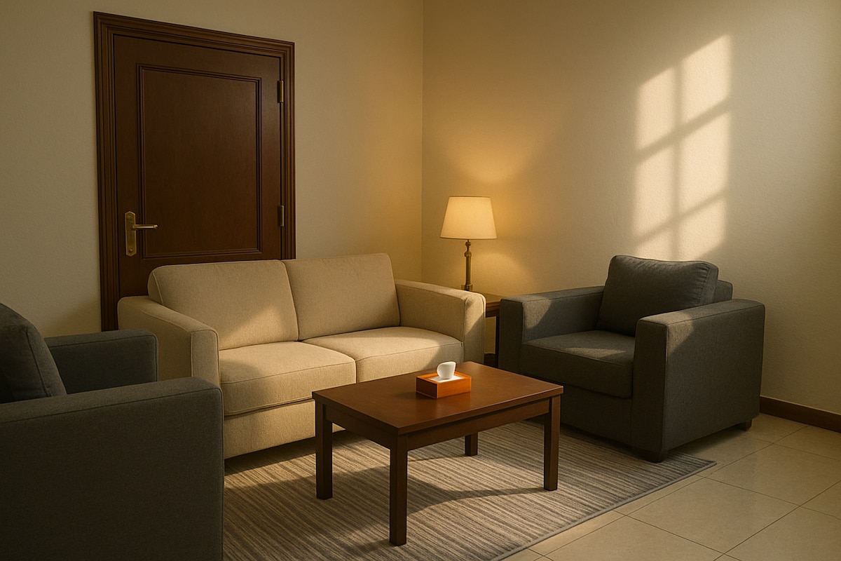 سويت غرفة نوم وصالة بإطلالة واسعة