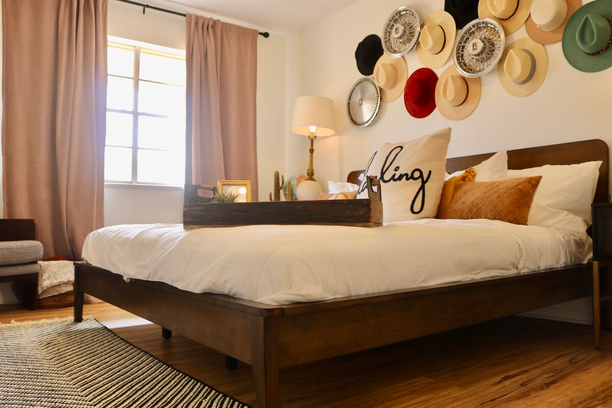 Zakoračite u Sleepy Eye Inn, transformirani silos za žito u srcu Hamiltona u Teksasu. Ovo jedinstveno utočište spaja rustikalni šarm s modernom udobnošću, s recikliranim drvetom, starinskim dekorom i udobnim detaljima. Uživajte u potpuno opremljenoj čajnoj kuhinji s retro crvenim frižiderom, luksuznim bračnim krevetom, prostranim kupatilom s samostojećom kadom i eklektičnim detaljima. Nalazite se u centru grada, samo vas nekoliko minuta dijeli od Circle T, restorana, kupovine i atrakcija!! Nezaboravan odmor u Teksasu!