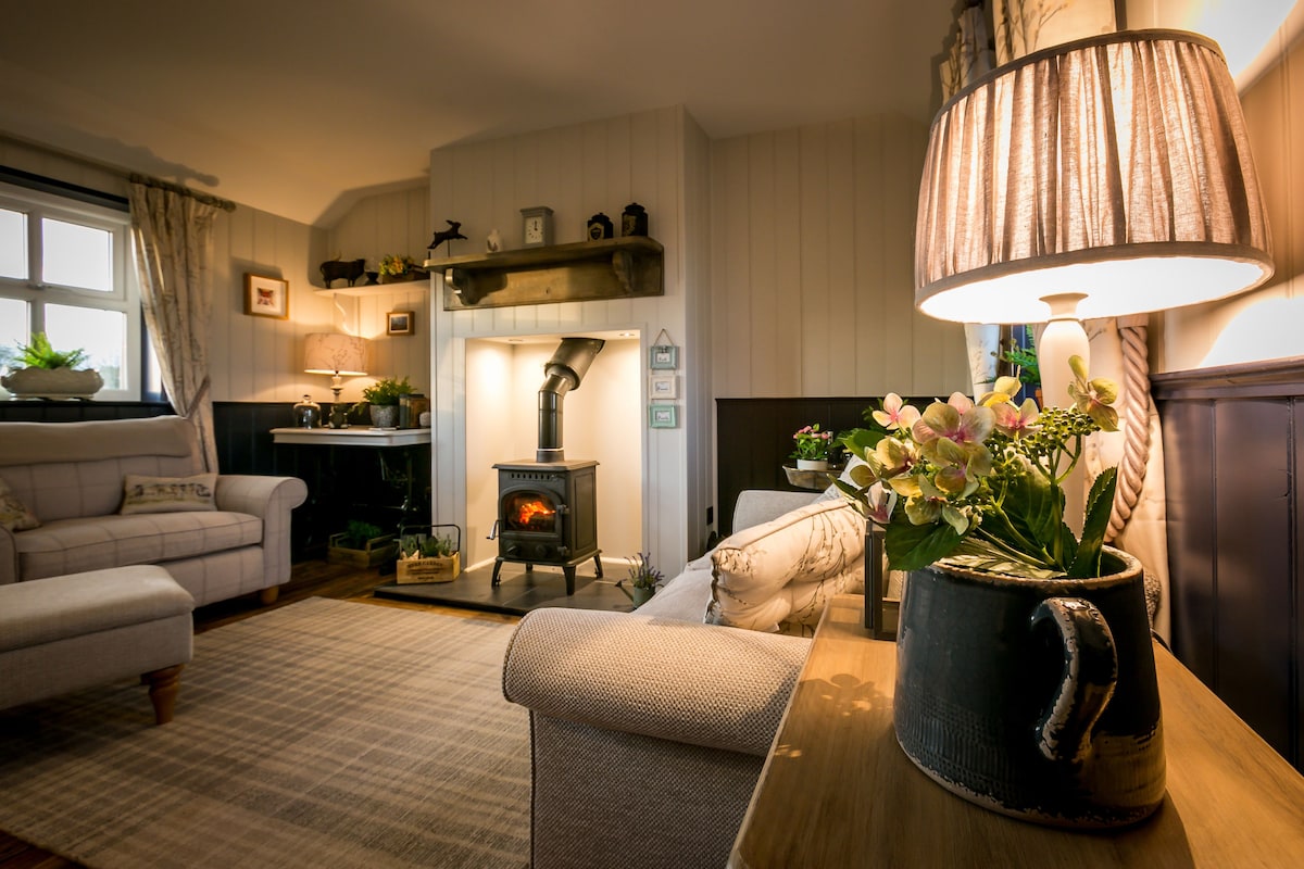 Visoko u krošnjama drveća dok gledate preko stjenovitih brda prekrivenih Heather, kamenih polja i uskih puteva. Duboko udahnite, opustite se i ponovo se povežite s prirodom. Jedinstveno ručno izrađeno odmaralište, koje se može pohvaliti prirodnim rustikalnim izgledom s potpuno modernom vezom. Pristup preko privatnog mosta s užetom, hidromasažnom kadom, vanjskom mrežom/visećom mrežom, vanjskim tušem izgrađenim za dvije osobe i super bračnim krevetom s staklenim krovom za gledanje zvijezda. Sve je u potpunosti kontrolisano glasovnim naredbama.