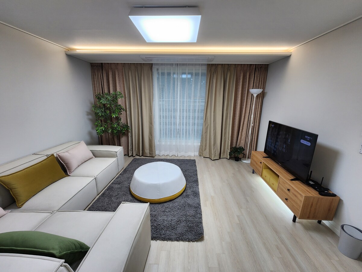 Prosječna ocjena: 5 od 5, recenzija: 20[Popust za produženi boravak. Maksimalno 7 osoba] 3 sobe 2 kupatila. Bolnica Kangdong Kyunghee.Godeok Ikea. Bolnica Kangdong Seongsim. 7 minuta od stanice Godeok. KSPO
