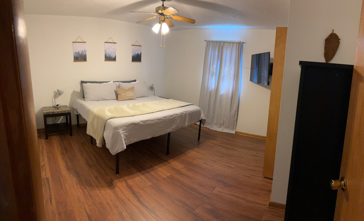 No stairs required as you enjoy amazing sunrises and sunsets at this serene, NON SMOKING AND PET FREE, 16 acre property. YOU WILL NEED 4WD in winter. The apartment is just steps away from your parking space. You just may see deer, fox, turkeys, rabbits and more. This is a great place to rest and ease the mind and an ideal location for gambling enthusiasts as the casino is just six miles away! This location is convenient for an out of town worker or couple who don’t want a hotel based stay.