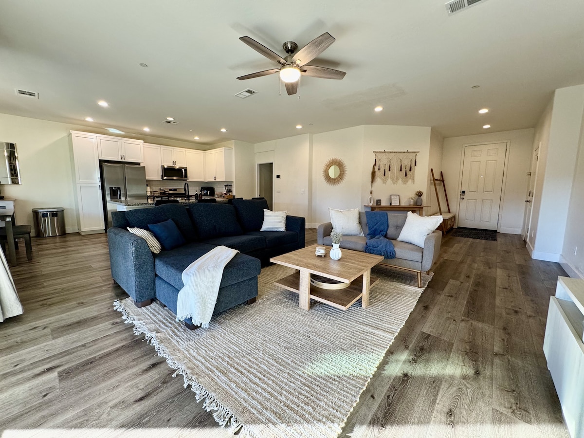 Relax in this beautiful, newer home located in a SAFE and QUIET NW Visalia neighborhood. Ideal for vacations, work trips, or a restful stopover, this peaceful retreat features 3 bedrooms and 2 baths. Enjoy a spacious primary suite with a king bed, walk-in closet, soaking tub, and walk-in shower. Close to Sequoia & Kings Canyon, with fast Wi-Fi, easy parking, and a smoke-free environment.