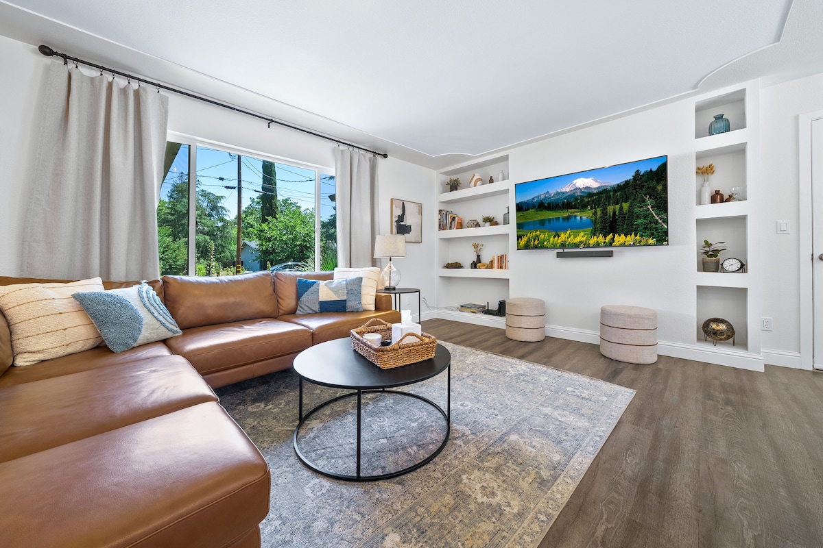 Opustite se i opustite u ovom mirnom i elegantnom prostoru! Nedavno renoviran, naš moderni apartman za goste će se osjećati kao kod kuće! Započnite dan praveći jutarnju šoljicu kafe u udobnom kutku za kafu. Uživajte u pripremanju poslijepodnevnog ručka u našoj potpuno opremljenoj čajnoj kuhinji s mikrovalnom pećnicom, električnom pločom za kuhanje, frižiderom i posuđem. Smješten u blizini prodavnica, supermarketa, restorana i pekara, odmah uz autocestu 5 i 3-5 minuta od Civic centra i centra grada