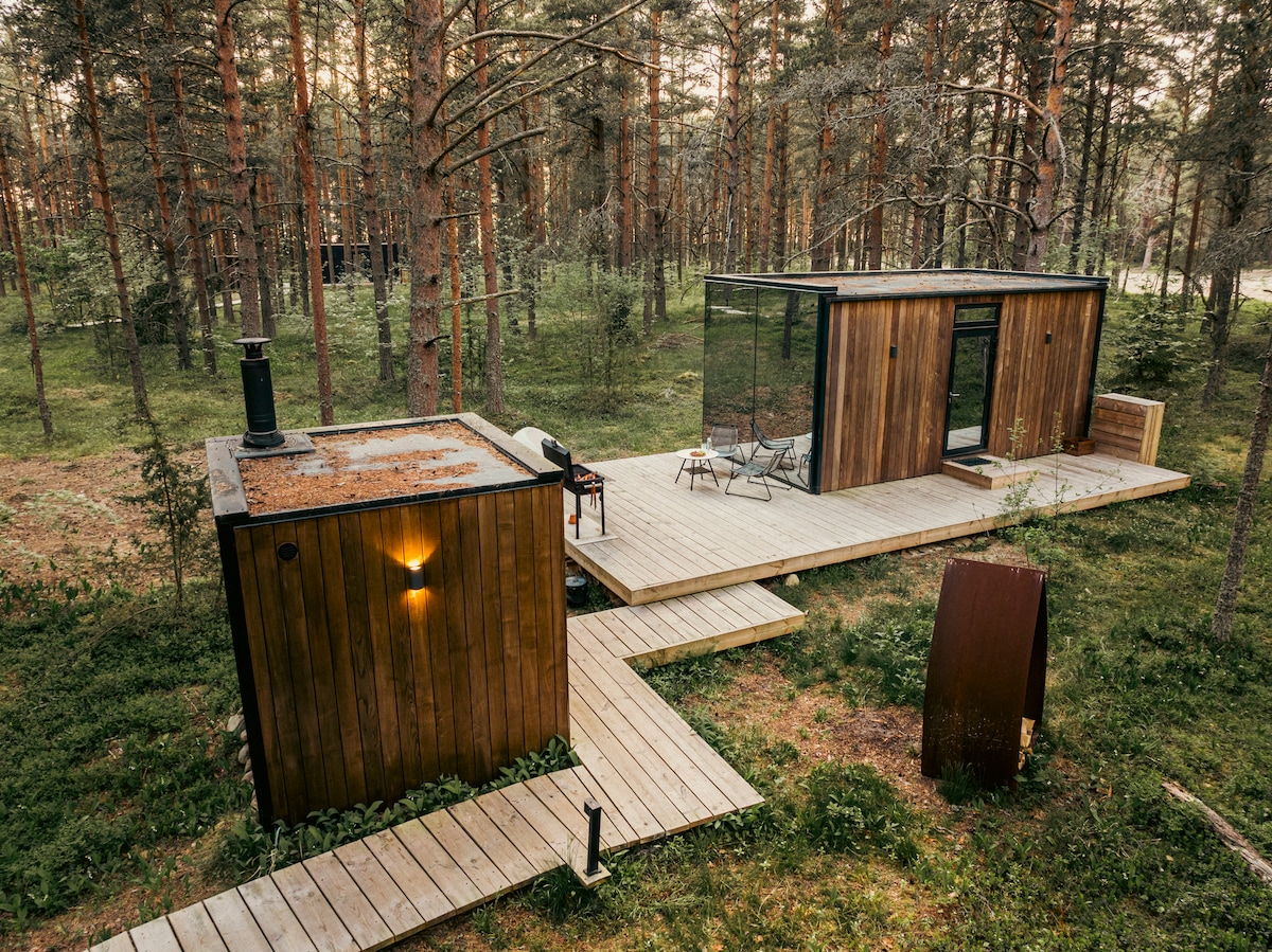 Šumska kuća s velikim privatnim vrtom nalazi se 30 minuta vožnje od Talina. Unutar kuće se nalazi električna sauna (maksimalno 6 sati uključeno u cijenu kuće), masažna kada (+50eur) i vanjska panoramska sauna na drva (+ 30eur) Na velikoj terasi nalaze se 2 ležaljke za sunčanje i vanjski namještaj, a gosti imaju na raspolaganju i roštilj. Klima uređaj, podno grijanje u tuš kabini/sauni i unutrašnji kamin u dnevnoj sobi