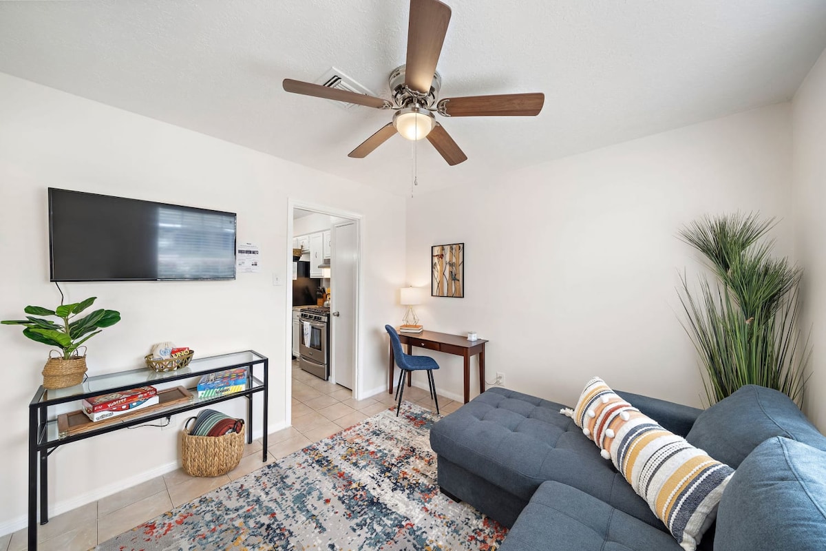 Relax at this upscale modern getaway featuring a massive private yard ★ 3 Cozy Bedrooms | 1.5 Modern Bathrooms | Accommodates 9 Guests ★ Fun Game Room: The perfect indoor hangout space for your group ★ Wide Backyard Oasis: Plenty of room for kids and outdoor games ★ Covered Porch Parking: Safe and convenient front-of-house entry • Modern style | Family-centric | Complimentary essentials • Fast internet | Remote-work ready • Fresh linens | Full Laundry