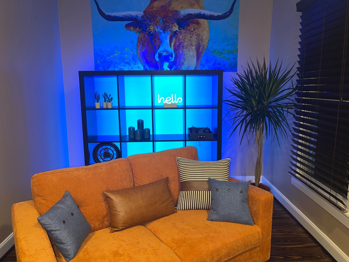 Posao ili zadovoljstvo, nije važno! Ovaj elegantni, potpuno namješteni dvosobni stan je nedavno renoviran i udaljen je samo 3 km od centra grada. U blizini Toyotinog centra, stadiona NRG, medicinskog centra u Houstonu, parka Daikin, Kongresnog centra i mnogih nezaobilaznih mjesta u gradu. Provedite dan u Downtown Aquarium, a zatim otiđite na piće i uživajte u živahnom noćnom životu grada. Savršeno za vikend putovanje ili duže! Besplatna vožnja od aerodroma za 2 gosta, naknada od 20 $ se primjenjuje za dodatne putnike.