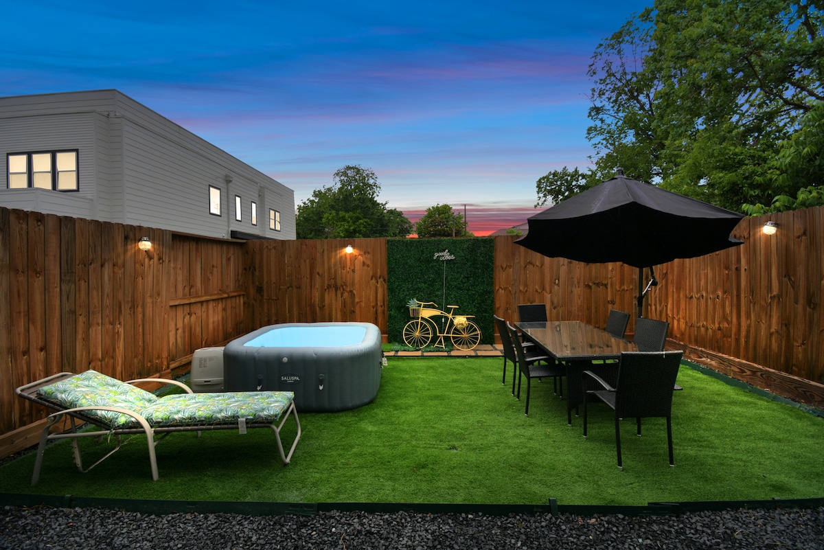 Nemojte samo pobjeći, idite negdje i kreirajte jedinstvene doživljaje s porodicom i prijateljima uz našu MASAŽNU KADU! Svježe novo modelirano i novo uređeno, želimo vam dobrodošlicu u Houston. Uživajte u večeri u našem dvorištu s našom toplom masažnom kadom, travom i ogradom za fotografije. Savršena lokacija u centralnom dijelu Houstona u Teksasu. Ova lokacija će biti jednostavna za putovanje do i od vaših odredišta. Garantujemo iskustvo s 5 zvjezdica!