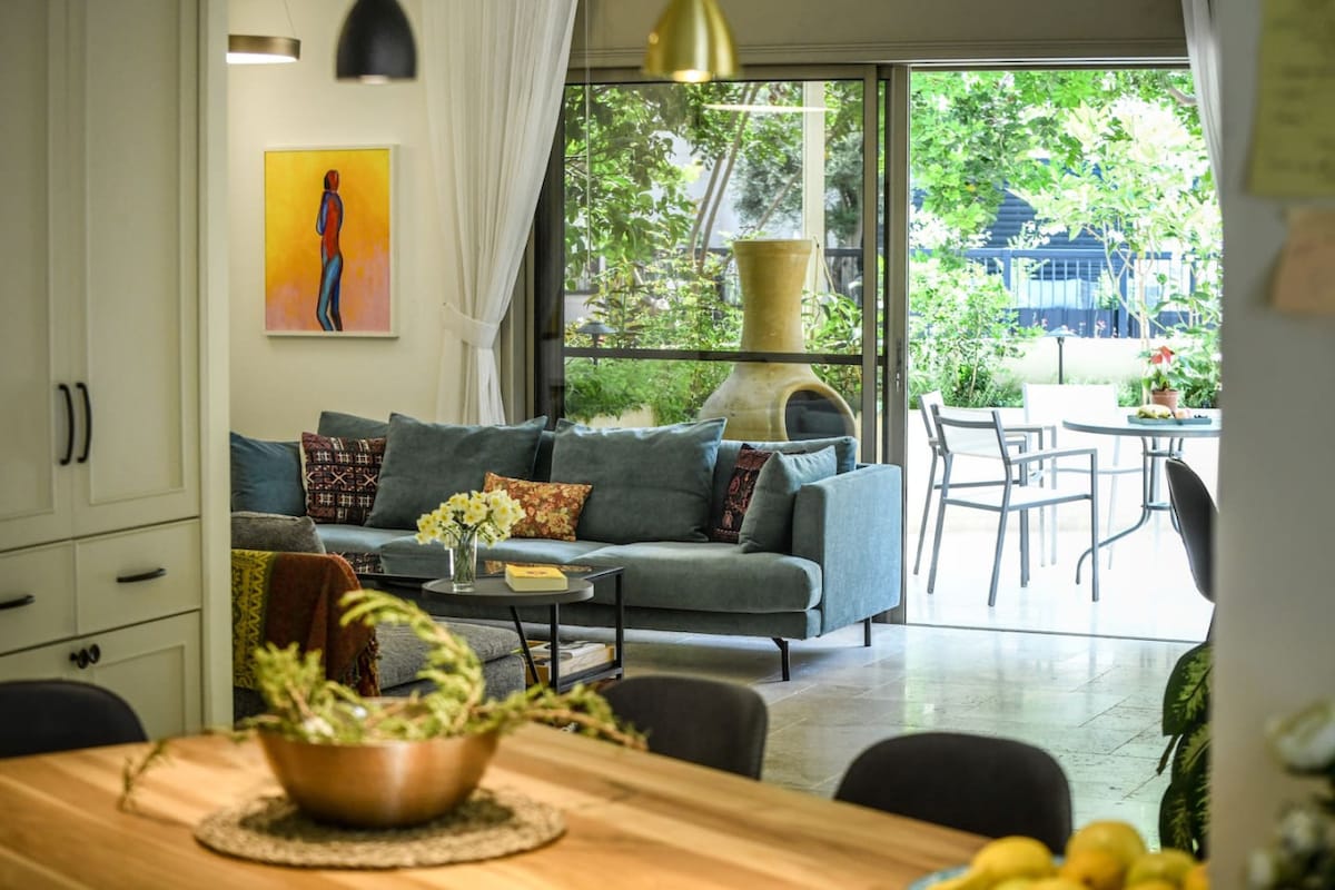 Šarmantan i prikladan za porodice 2BR smještaj u mirnom predgrađu Natanya, u samom centru Izraela. Uživajte u prostranom dvorištu s roštiljem, udobnoj terasi ispunjenoj biljkama, 2 toaleta, TV-u s velikim ekranom u dnevnoj sobi, televizorima u obje spavaće sobe, klima-uređaju, brzom Wi-Fi-u, mašini za pranje veša i potpuno opremljenoj kuhinji sa svime što vam je potrebno. Supermarketi u blizini i trgovački centar preko puta. Samo 5 minuta do rute 4, 15 minuta do ruta 2 i 6. Idealno za odmor, porodična putovanja ili savršeno rješenje za dugoročni boravak!