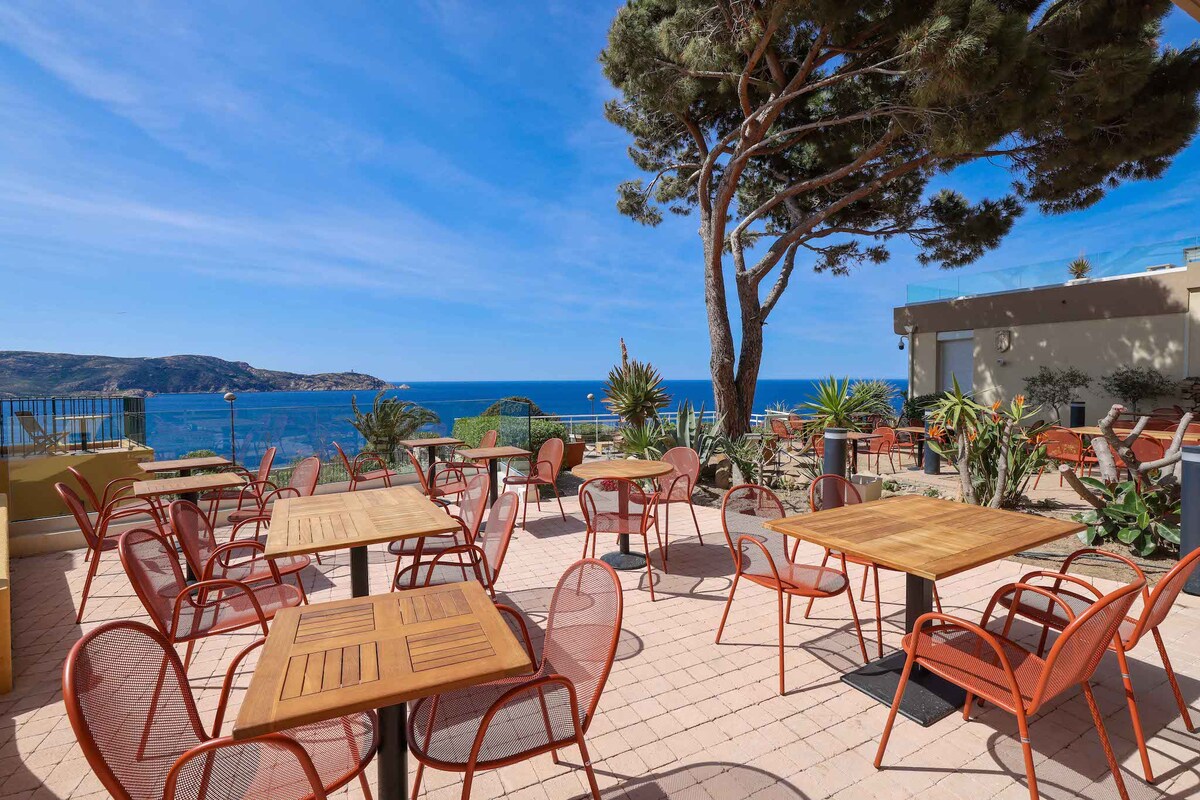 Chambres modernes de 27m2, intimistes et spacieuses, grande terrasse, vue mer et montagne. Des chambres spacieuses et intimistes, décorées avec raffinement pour un séjour tout en douceur. Plages, balades et découvertes culturelles rythmeront vos journées. Détendez-vous sur votre terrasse ou dans le jardin d’oliviers, face à des vues spectaculaires sur la mer et la montagne.