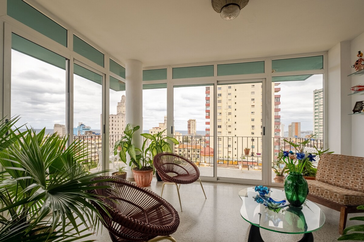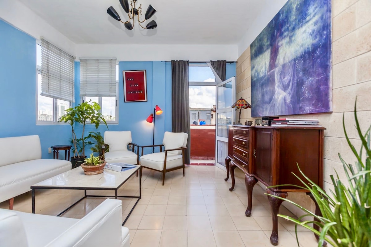 Centralni, moderni i privatni stan Wi-Fi, Smart TV, opremljena kuhinja, klima uređaj, prekrasan pogled na more, 5 minuta od Stare Havane i 300 metara od Havane Malecón. Okruženi prodavnicama za kupovinu hrane i pića, mjestima s izuzetnom gastronomijom po vrlo povoljnoj cijeni, noćnim centrima, barovima , diskotekama, hotelima i svojim privilegovanim položajem u Vedadu. Vrlo blizu autobusa do prekrasne Playa de Santamaria, samo 20 km od Habane.