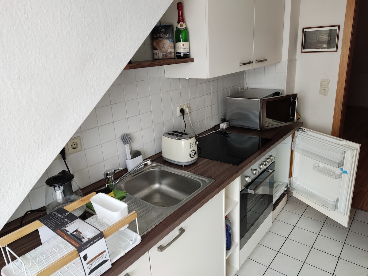 Mala dodatna stambena jedinica sa svime što ide uz nju u maloj dodatnoj zgradi . Prizemlje. TV, Wi-Fi, fen za kosu, pegla, šporet, mikrovalna pećnica, frižider sa zamrzivačem, toster, kuhalo za vodu, aparat za kafu, mašina za pranje veša Dodatna stambena jedinica se nalazi u mirnoj sporednoj ulici direktno na nasipu. Savršeno pogodno za bicikliste i ljude koji vole mir i tišinu. Restoran u selu. Kupovina, kino, restorani, toranj za penjanje, ronilački toranj, hallec za plivanje. na udaljenosti od 6 km.