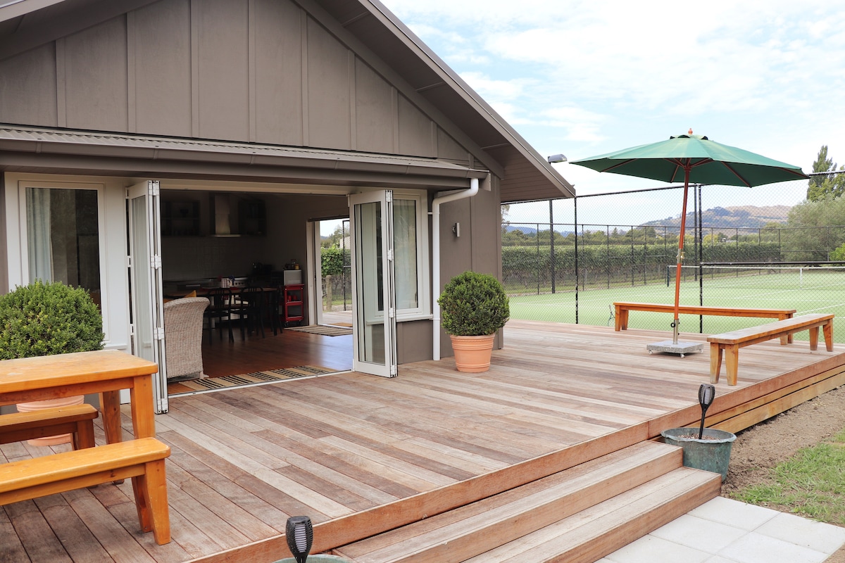 Enjoy staying at our newly built, beautiful cottage. There is so much to experience in Hawkes Bay and at the end of the day, relax and have a glass of wine on the large deck and enjoy a soak in the spa. We are 3km’s from the heart of Havelock North and in a semi-rural location; on the main arterial road into the village. The cottage is fully self-contained and on separate grounds to our main house, which is on the adjoining property. There is even room for a caravan (with external power point)