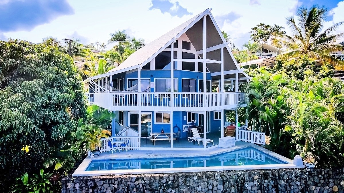 This is a HOSTED RENTAL and we are fully HB 108 COMPLIANT, but you won't see us unless you need us-on site or by text 7 days a week. This is not a party house. We rent to fun-loving folks who seek tranquility in paradise. Bookings made after 6/28/21 include all taxes and fees. Guests walk in and we see wow on their faces: gourmet kitchen, huge bedrooms.. "perfect for a family reunion" "cool at night, was just right" "close to the best beach in Hawaii" "amazing sunset views"