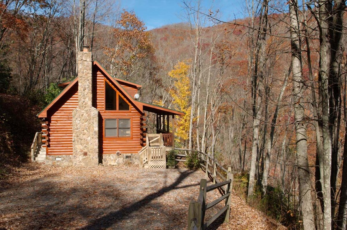 Maggie Valley-Birdsong Cottage is a romantic, cozy cabin retreat w/ a private hot tub & indoor/outdoor fireplaces and a fully screened porch. Thoughtfully designed for comfort & style—ideal for a honeymoon, anniversary, or cozy mountain getaway. Enjoy access to the MV Club & Resort community pool, golf, tennis, & a relaxed on-site restaurant. Centrally located - waterfalls, hiking, shopping, dining, skiing, tubbing, fishing, etc. Easy, paved, non-steep road access makes arrival stress-free.