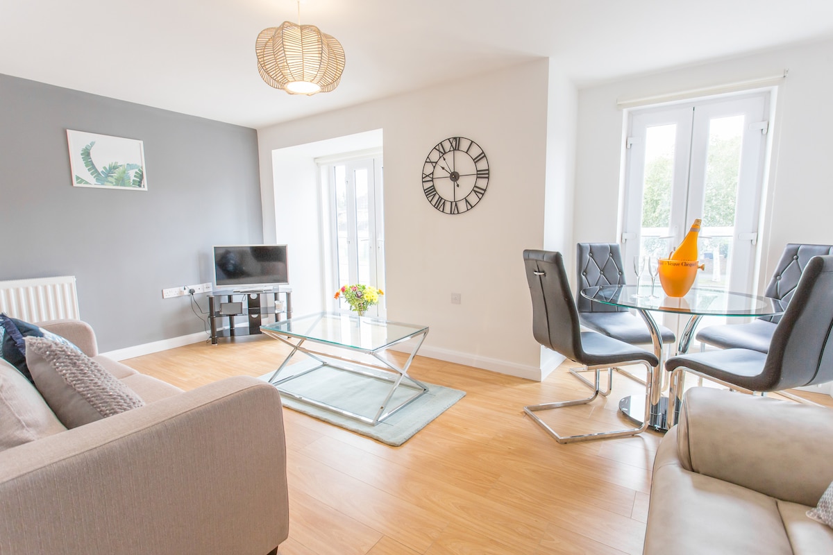 Sedmični i mjesečni boravci s popustom! Zakoračite u utočište stila i udobnosti, modernog uređenja i obilja prirodnog svjetla. Otvorena kuhinja, trpezarija/dnevni boravak su udobni i privlačni, dok obje spavaće sobe nude privatne spavaće sobe i direktan pristup vlastitoj terasi kako biste se opustili nakon dana avanture. Znamenitosti Oxforda: Bodleian Library, Ashmolean Museum i Oxford Castle. Volite kupovati? Westgate i Bicester Village su vaši gosti. London? Manje od sat vremena vozom. Pobrinuli smo se za vas u slobodno vrijeme/posao!