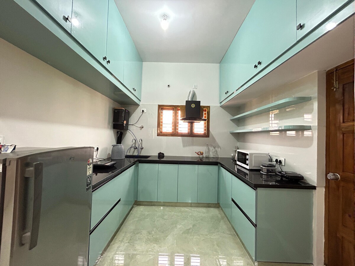 Dobro došli u Hasiru, miran, nezavisan dom u sigurnoj ograđenoj zajednici. Okružen zelenilom, ima prostrani dnevni boravak, potpuno opremljenu kuhinju, udobne spavaće sobe, brz Wi-Fi i privatni vrt, savršen za porodice, parove ili radnike na daljinu. Uživajte u privatnosti i osiguranju 0–24, samo 20 minuta od palače Mysore i brda Chamundi. Hasiru je vaš idealan bijeg gdje se udobnost susreće s prirodom.