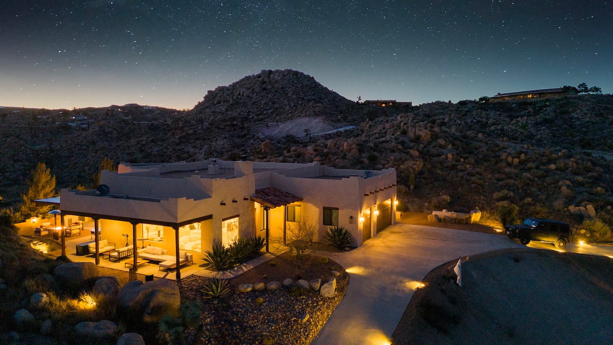 Discover ultimate privacy and comfort at House of Kuna, set on a secluded 2.5-acre hillside set in a majestic boulder landscape. Whether stretching out in the yoga studio, soaking in the hot tub, or gathering around the firepit, you'll find relaxation & fun at every turn. ✦ Secluded 2.5-Acre Property w/ Unique Boulders ✦ Relaxing Hot Tub & Cowboy Tub ✦ Large lounging deck nestled within the boulders ✦ 270° outdoor concrete couch w/ firepit ✦ Cozy Yoga Studio ✦ Central Heat/AC