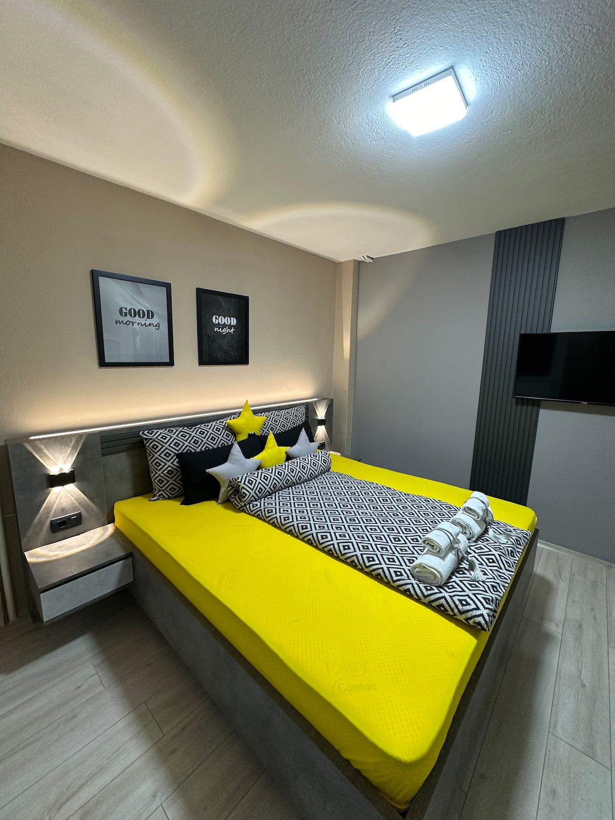 Budite jednostavni u ovom mirnom i centralno lociranom mjestu. Stanovi na jezeru su moderni i jedinstveni. Potpuno novo smješteno u mirnom području, 3 minute hoda do centra grada. Kuhinja je potpuno opremljena. (mašina za pranje suđa, mikrovalna pećnica, toster, rerna, frižider, aparat za kafu (dolce gusto) i kuhalo za vodu). Spavaća soba je opremljena mašinom za pranje veša i sušilom za kosu. Ima 2 televizora i 2 klima-uređaja. Odvojena spavaća soba s balkonom, besplatan Wi-Fi, besplatan parking. Uživajte u boravku