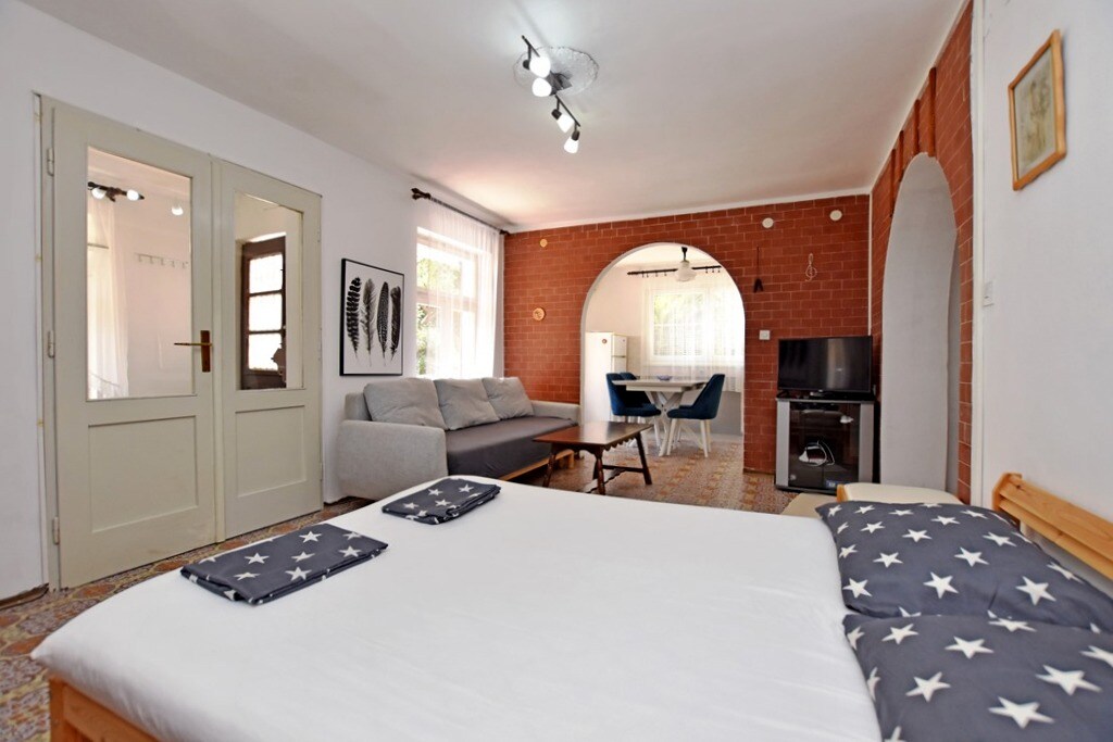 Prizemlje šarmantne seoske kućice na brdu Podi u Herceg Novom, s pogledom na more i horizont grada. Stan ima dvije dvokrevetne spavaće sobe s bračnim krevetima i kaučem na razvlačenje u dnevnoj sobi, kuhinju, kupatilo, terasu, parking. Bit ćete okruženi lokalcima i njihovom svakodnevnom životu. Naša seoska kućica se nalazi na brdu, izvan grada, ali u lokalnoj ulici, možda će vam trebati automobil ili taksi da biste došli do plaže ili centra grada. Od seoske kućice možete otići do obližnjih planinskih staza. Prikladno za LGBT populaciju