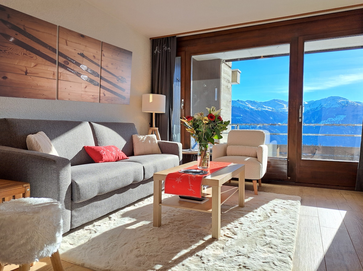 Psi su dobrodošli .🐶 Tesla punjač je dostupan besplatno. Na vratima stanice Crans-Montana, P'tit Chalet je jedinstven smještaj. U ovom nezavisnom studiju od 35 kvadratnih metara s urednim ukrasima pluta zrak odmora i mira. Dobar je osjećaj. Velika privatna terasa s roštiljem osmišljena je za opuštanje. Nudimo vam domaći džem i malu bocu lokalnog vina.
