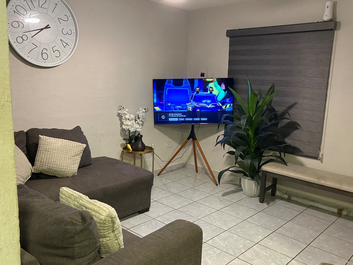 Moderan i udoban nezavisan stan za kraće i duže boravke, ima sve sadržaje za uživanje u privatnom prostoru, s opremljenom kuhinjom, krevetom , pametnim TV-om , Wi-Fi mrežom . Stan se nalazi na vrlo centralnoj lokaciji, u blizini bolnica: San José, IMSS, Chávez, ISSSTESON, Restorani , kina i trgovine mješovitom robom. Kroz stan prolazi nekoliko putanja kamiona.