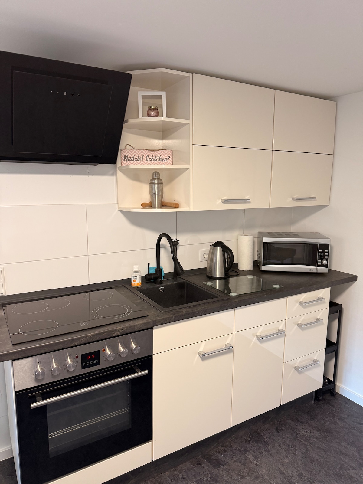 Stan sa tuš kabinom, zasebnim WC-om, potpuno opremljenom kuhinjom, aparatom za kafu, kuhalom za vodu, mikrovalnom pećnicom, tosterom... Supermarket preko puta, kafić sa sladoledom, pub i prodavnica kebaba u blizini, <100 m do pizzerije, pekare, kafića/brijača, hemije. 10 minuta automobilom do Werreparka, Bad Oeynhausena, raznih klinika, Aquafuna itd. Lijepa priroda, rijeka Werre na pješačkoj udaljenosti, rijeka Weser na oko 5 km, bicikli dostupni za iznajmljivanje.