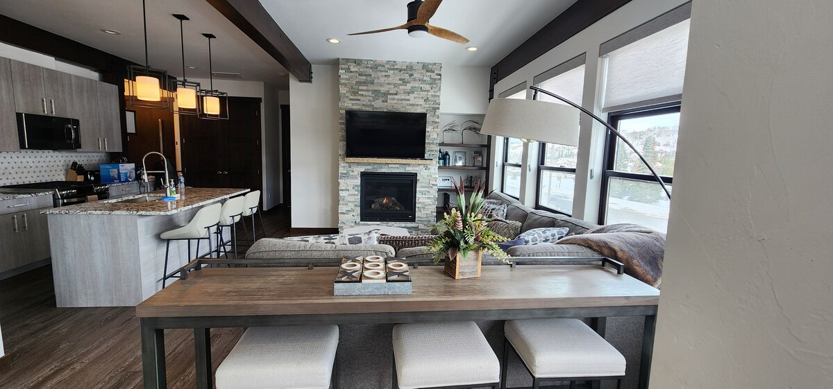 Dvije spavaće sobe, dva kupatila, kondominij na posljednjem spratu s tri privatna balkona. Naša potpuno opremljena kuhinja ima sve sadržaje koji su vam potrebni za pripremu omiljenih jela, a na raspolaganju su vam i besplatne toaletne potrepštine. 15 minuta hoda do glavnih uličnih barova i restorana i na besplatnoj liniji skijaškog prevoza do planine ili glavne ulice. Iskoristite naš besplatan parking ispred zgrade i opustite se nakon dugog dana na padinama ili stazama u vanjskoj masažnoj kadi u zajednici.