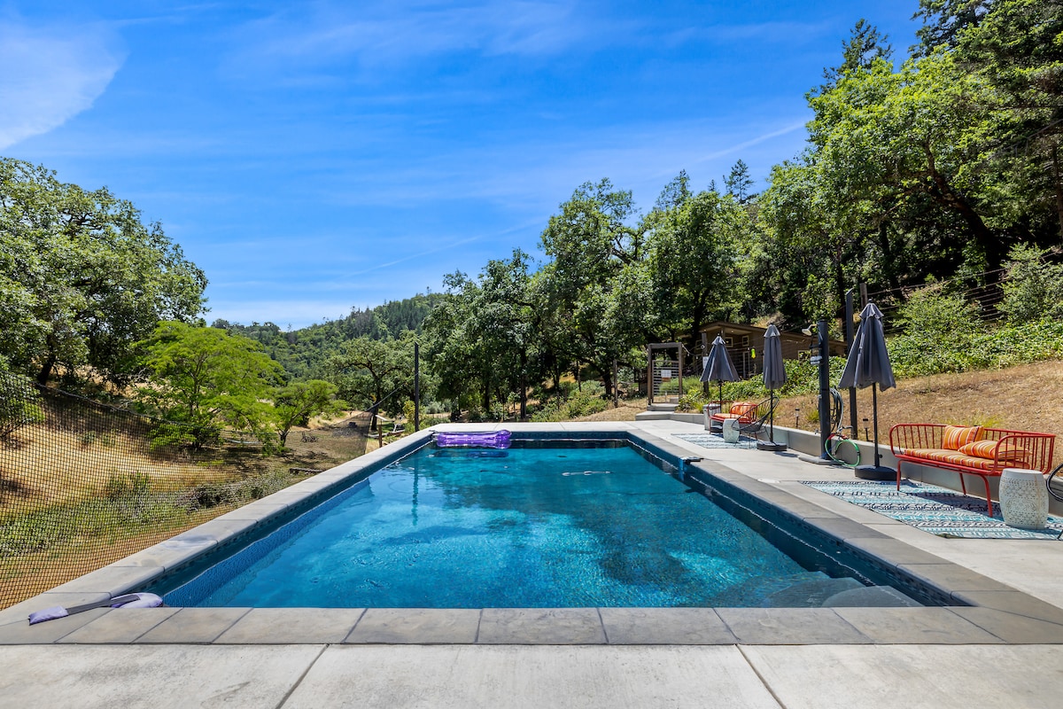 Prekrasna vila inspirisana Toskanima smještena na sjevernom uglu doline Alexander Valley i okruga Sonoma. Savršeno prebivalište za bijeg iz grada i doživljaj prekrasne prirode s luksuznim sadržajima. Cloverdale, Healdsburg i Anderson Valley vinarije su sve u kratkoj vožnji autocestom 128 vinskom stazom - 1 sat vožnje do obale i grada Mendocino. Moderan privatni prostor s kompletnom kuhinjom i privatnim kupatilom s pristupom bazenu, jacuzziju, vanjskoj kuhinji/roštilju i ognjištu. Ukupno # 2713N