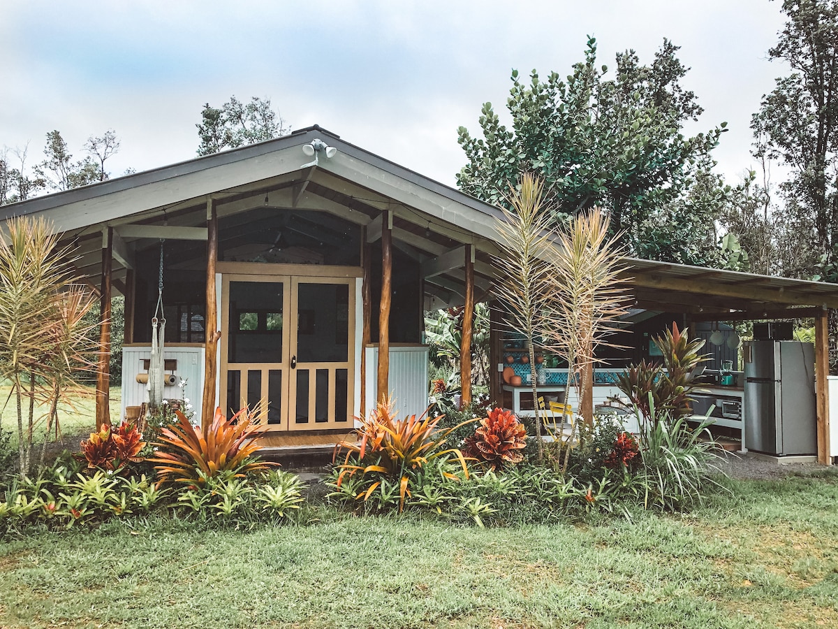 Reconnect with nature at this unforgettable escape. The Bali Hale allows you to experience the magic of the jungle, while still having many modern comforts of home. Surrounded by a lawn and fruit trees, enjoy the fresh Hawaiian air while you wake up to the sunrise. Fall in love with glamping and allow yourself to reconnect with yourself and Mother Earth. Experience island life, all while being amidst a laid back neighborhood and main roads that will take you to your next Big Island adventure!