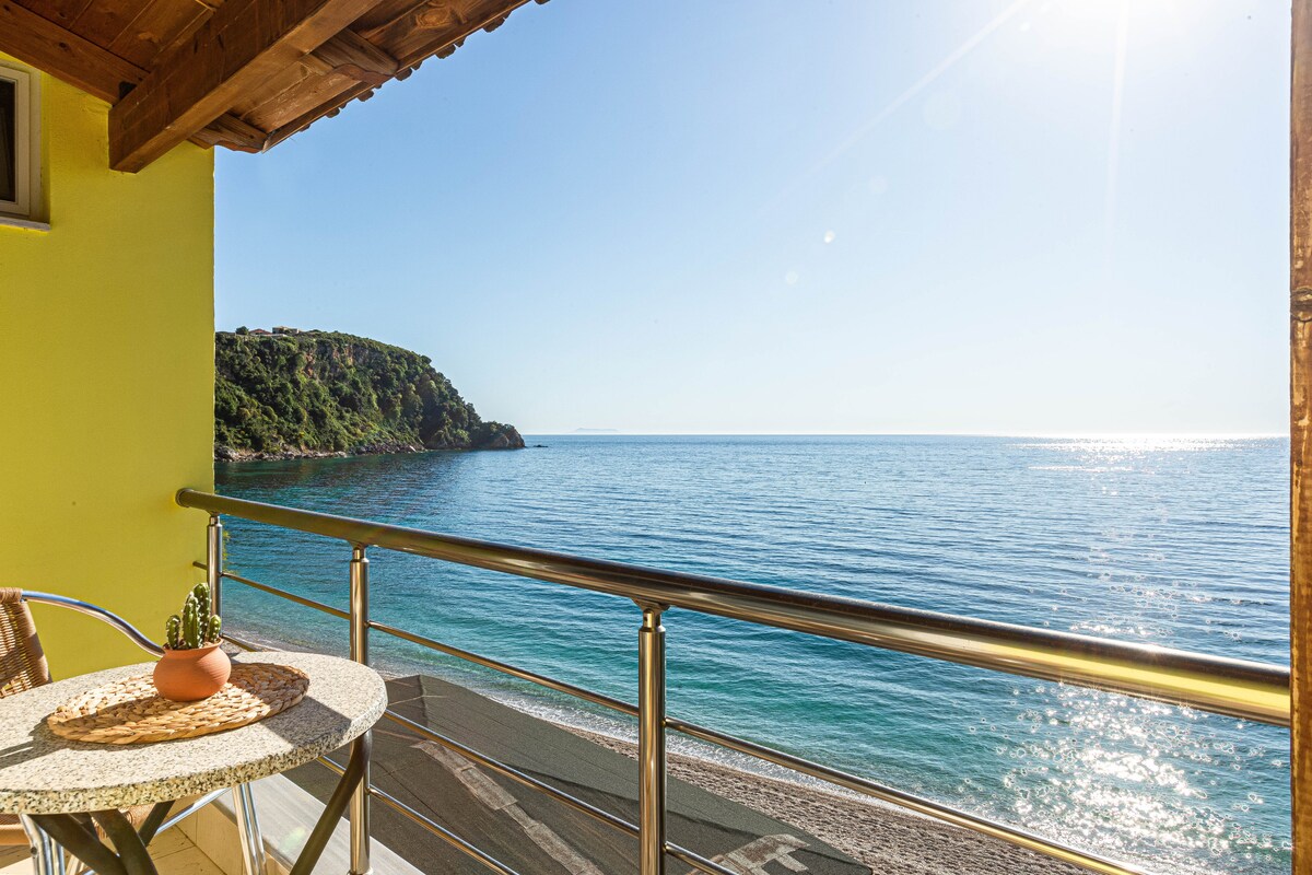 Doživite punu ljepotu Jonskog mora na našoj vrhunskoj lokaciji pored plaže Potami. Ovo je savršeno mjesto za ljubitelje kristalno čistog mora, sunčanih dana i odmora od svakodnevnih problema. Nudimo parking i obezbjeđujemo suncobrane i stolice za svaku od naših soba, što je čini jednostavnim izborom.