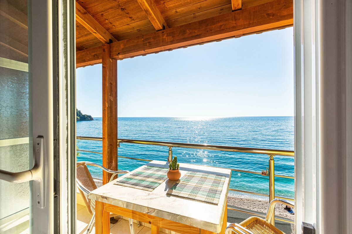 Idealna lokacija za porodični odmor na plaži! Uključen je 🏖️direktan pristup privatnim ležaljkama za sunčanje na plaži. Odlična 📍lokacija s restoranima i tržnicama na korak od vas. 🍳Potpuno opremljena unutrašnja kuhinja s osnovnom opremom. 🫕Vanjska kuhinja s roštiljem i zajedničkom trpezarijom. 🛌Vrhunski popluni, posteljina i deke za sva godišnja doba. 🅿️Garantovano parkiranje u sklopu objekta. Mašine 👚za pranje veša u hotelskim prostorijama. 💻Brzi Wi-Fi i namjenski radni sto. 🌅100 m od plaže, probudite se uz zadivljujući pogled na more.