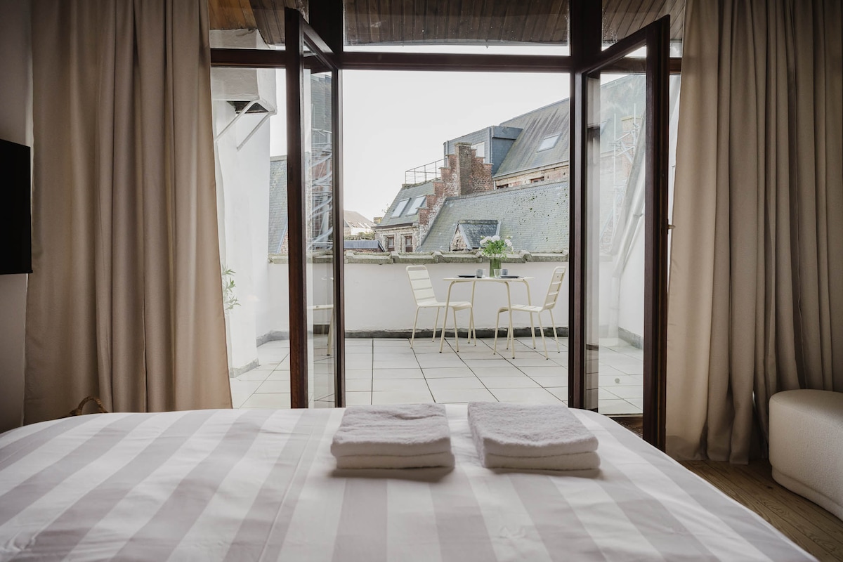 Prostrano potkrovlje za dvoje u historijskoj vili, opremljenoj svim modernim udobnostima. Naći ćete sve potrebne sadržaje za luksuzan boravak: sunčanu terasu, klima uređaj, brzi Wi-Fi, TV s Netflixom i opremljenu kuhinju. Smješten u historijskom centru na modernom Sint Paulusplaats, nedaleko od Scheldekaiena i Grote Markta, mas i trgovačkih ulica do kojih se može doći pješice. Nalazite se na 3. spratu i do njega se dolazi originalnim stepenicama iz 1802.