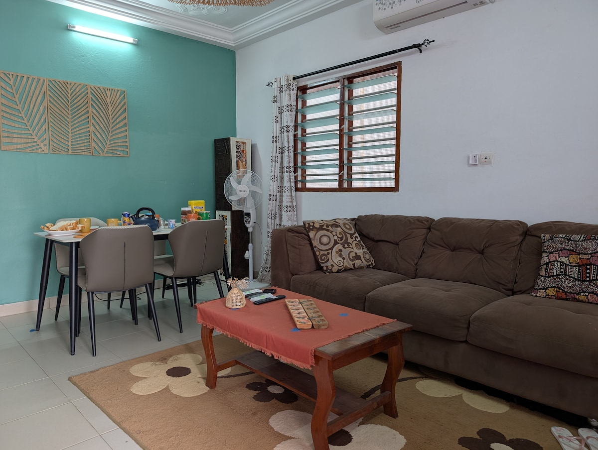 1. od 3 stambene jedinice koji se nalazi u ulici St. James Atimpoku, 2 minute vožnje od hotela i odmarališta Royal Senchi. Prostran i dolazi s spavaćom sobom s bračnim krevetom, kupatilom, dnevnim boravkom s kaučima, Wi-Fi mrežom, Smart TV-om i lokalnim i međunarodnim kanalima, kuhinjom s štednjakom(ne rernom), frižiderom, priborom za kuhanje, priborom za jelo. Generator u pripravnosti je dostupan u vrijeme nestanka struje