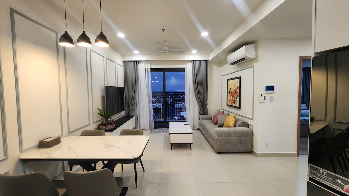 Prostran i elegantan 2BR stan u The Glory, Thu Dau Mot New City. Savršeno za porodice, grupe ili poslovne boravke. Uživajte u modernom dizajnu, potpuno opremljenoj kuhinji, pametnom TV-u, brzom Wi-Fi mreži i pogledu na grad. Spavaće sobe s udobnim krevetima i prirodnim svjetlom. Odlična lokacija u blizini tržnog centra Aeon, tornja Becamex, parkova i kafića. Sigurna zgrada s bazenom, teretanom i recepcijom 0-24. Opustite se, radite ili istražujte – vaš savršeni dom daleko od doma!
