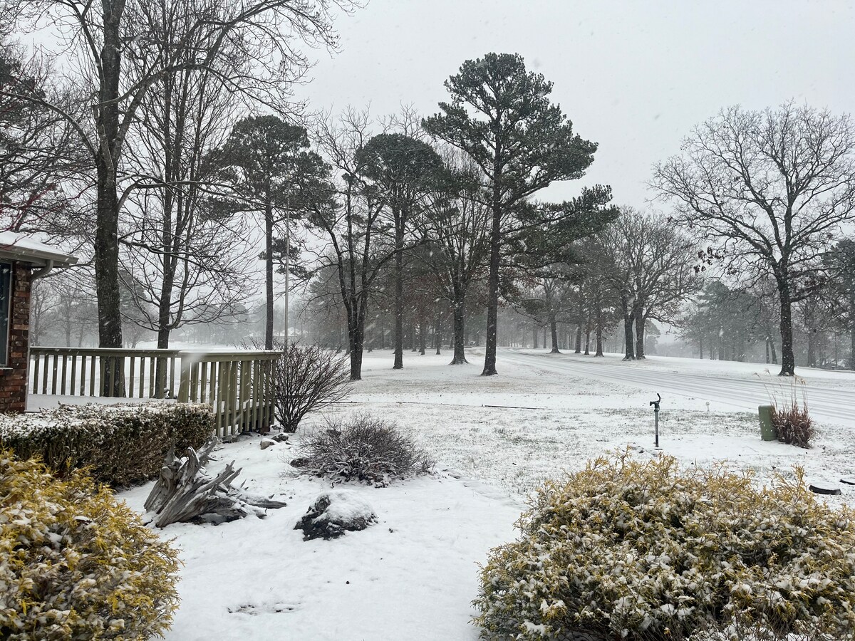Vaše utočište u Eureka Springsu! Zaboravite na brige u ovom prostranom i mirnom prostoru. Bračni krevet (širine 180–220 cm), velika hidromasažna spa kada, velika terasa, potpuno opremljena kuhinja, kamin na propan, 70-inčni TV i osamljeni mir. Nekoliko minuta od centra Eureka Springsa i oko 3 km od rijeke Kings. NEMA Wi-Fi mreže, imamo SATELITSKU televiziju. Zbog šljunčanog prilaza i nagiba, ne preporučujemo niske sportske automobile ili motocikle, ili budite oprezni. ** Raspitajte se o našim vožnjama stazom „Tread Lightly”.