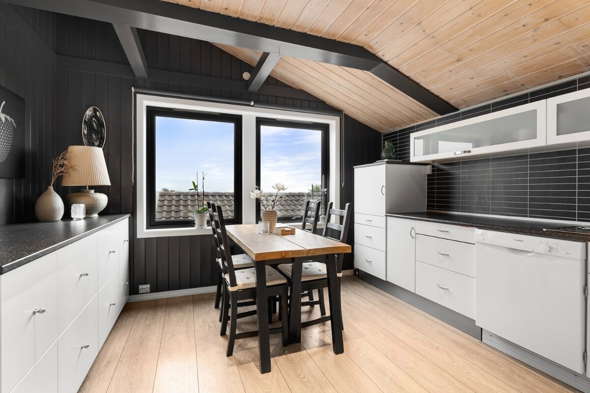 4 spavaće sobe, 2 kupatila i 2 dnevne sobe, od kojih je jedna trpezarija. Jedna spavaća soba na 2. spratu je porodična soba s bračnim krevetom i kaučem na razvlačenje. Dvije spavaće sobe imaju porodične krevete na sprat sa krevetima od 180 cm dolje i 90 cm gore. Posljednja spavaća soba ima običan bračni krevet. Trpezarija sa prostorom za 12 osoba. Grijanje grijaćim kablovima u podu, toplotnom pumpom i peći na drva. Bežični internet (fiber). AppleTV je dostupan.