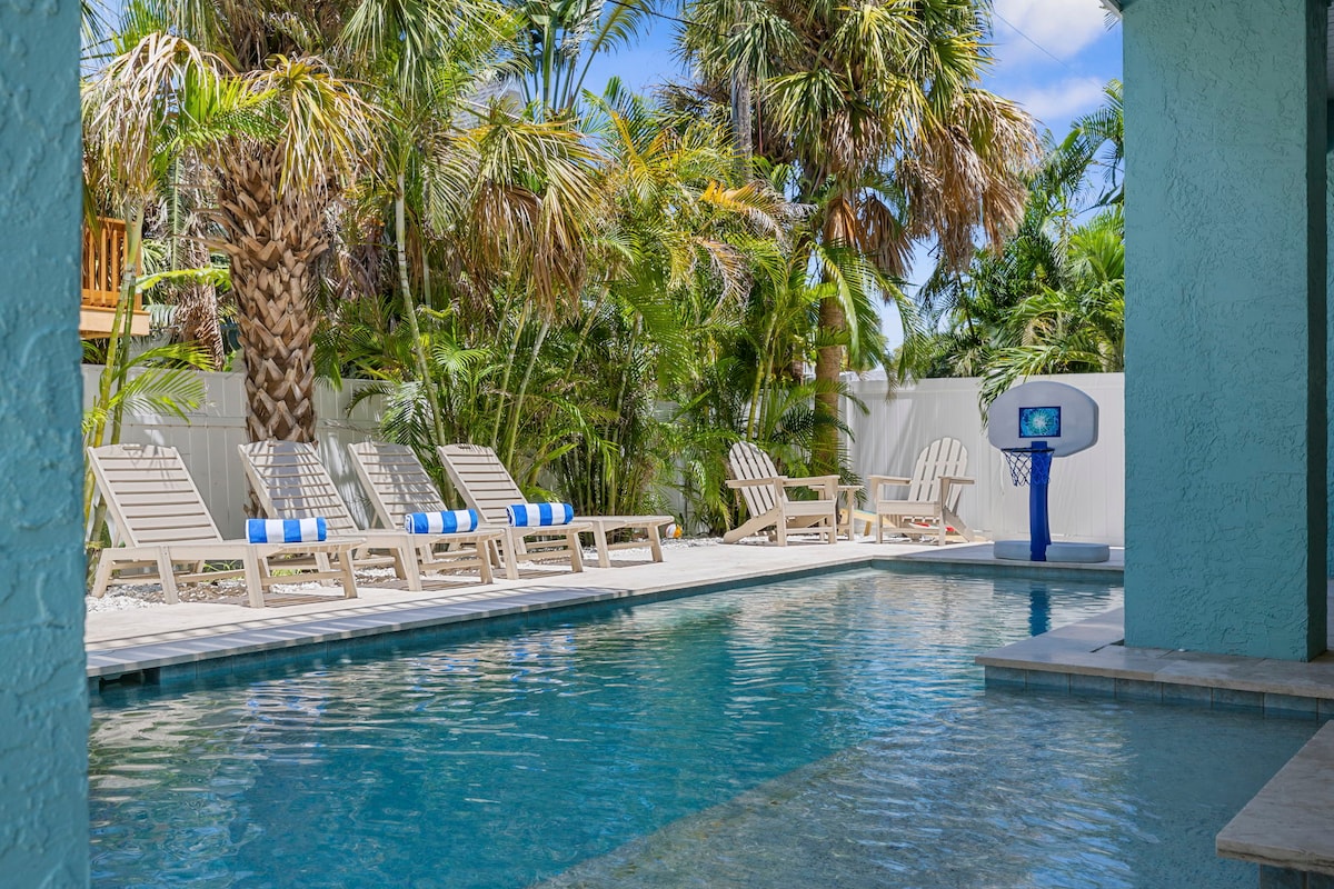 Charming Breezy Harbor sits in a quaint, exclusive corner of AMI and boasts a private heated pool and ample parking for 2 vehicles and even a boat: -We typically have shorter stays available, just ask! -If you don't have a single 50Lb pet, please discuss it with us -One of the twin boutique MyAnnaMariaStay homes, look us up! You'll love the luxury mid-century feel, lush yard, and a 6-min walk to the beach, Publix or the trolley stop. AMI was voted a top 50 vacation spot in the world in 2024