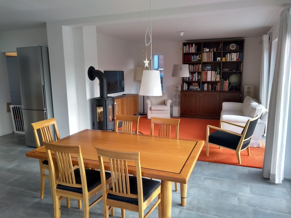 Kuća za odmor na selu proširila se s pažnjom na detalje (56 m2), pogled na polja, paddocks i šumu - nema prazničnog sela geto ;-) Terasa od 25 m2 zapadno sa spektakularnim zalascima sunca, alternativno udoban kamin i brz Wi-Fi za snimanje vremena 2 min. do šume, idealno za pse, šetnje šumom ili brdski biciklizam Za djecu: igralište, bazen i zoološki vrt u roku od 5 minuta dostupni Sve u svemu: Nema dodatnih troškova za pse, dodatne osobe (najviše 4), peškire ili posteljinu