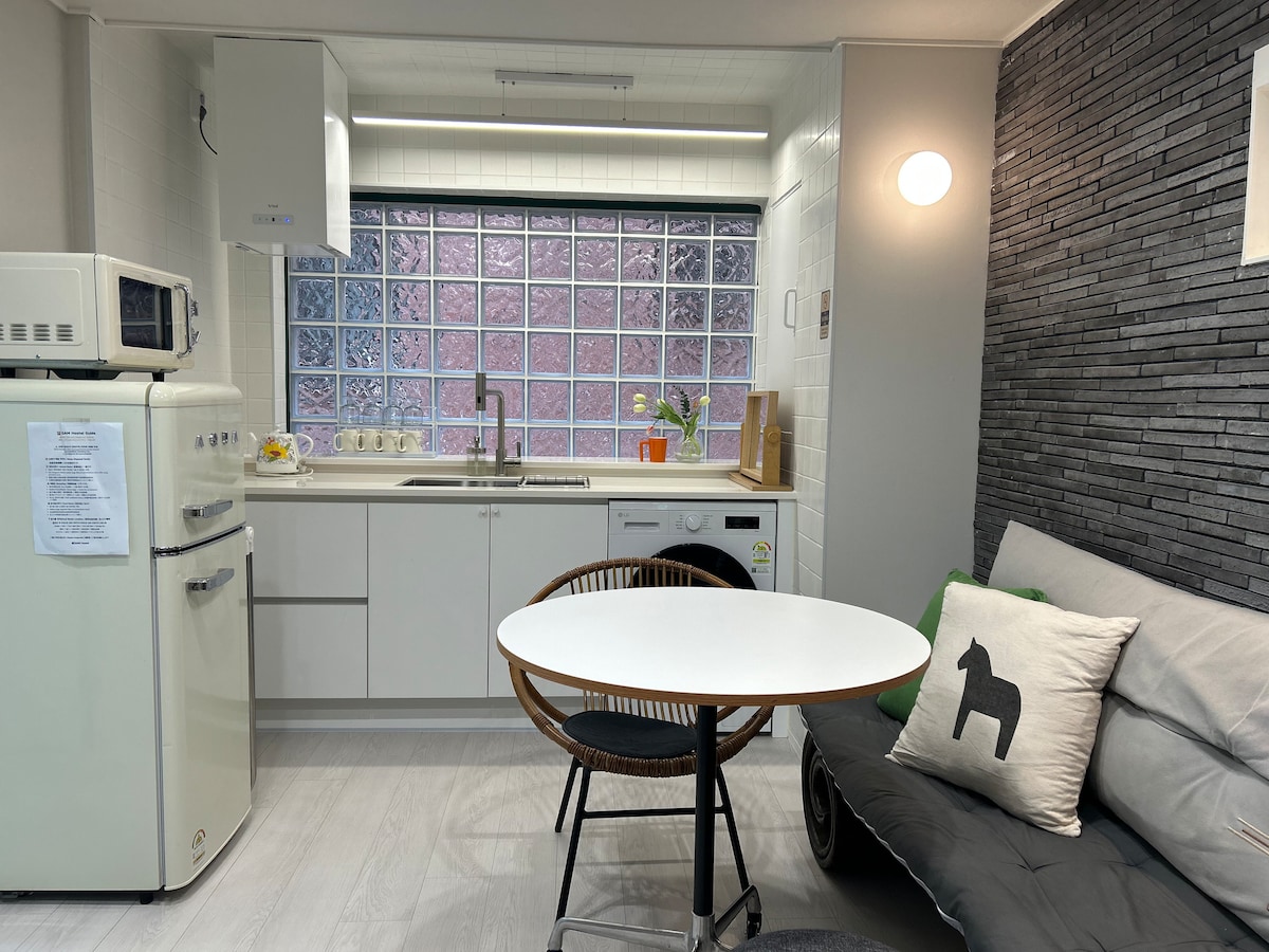 Dobro došli u Cheongnyangnijev novi emocionalni smještaj, Cheongnyangnyang. Cheongnyang Cheongnyang je udaljen 3 minute hoda od stanice Cheongnyangni. To je prostor s toplim i udobnim senzibilitetom i praktičnošću u gradu. Više o ✨ smještaju Smještaj je preuređen iz starog prostora. Bio je to novi privatni smještaj inspirisan Airbnbom. Spavaća soba: TV s bračnim krevetom Kuhinja: Nema samostalnog ugošćavanja (nema indukcionog šporeta ili šporeta) Potpuno opremljen posuđem Frižider i mikrovalna pećnica Dnevni boravak: sto za 2 osobe i pokretna traka WC šolja: Obezbijeđen je sapun/regenerator/gel za tuširanje