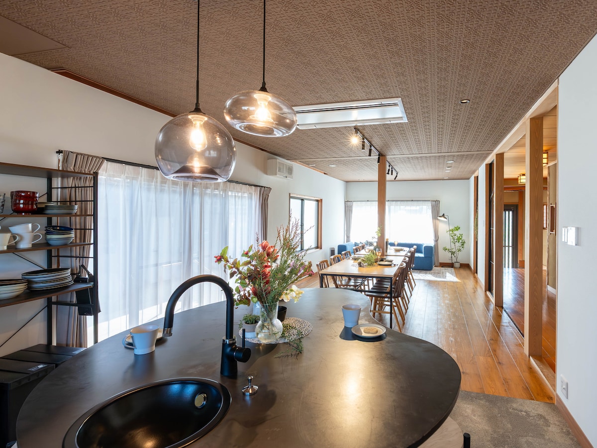 Ova prekrasno obnovljena japanska seoska kuća smještena je u srcu japanskog sela, okružena rižinim poljima, svetištima, parkovima i terenima za golf. S vlastitim prirodnim bazenom, unutrašnjim i vanjskim kuhinjama, otvorenim kupatilom, teretanom i saunom možete doživjeti tradicionalno japansko okruženje s modernim luksuzima, bilo kao porodica koja želi uživati u zajedničkom vremenu ili putnicima koji žele isprobati nešto posebno tokom svog boravka u Japanu. Napomena - Preporučuje se iznajmljivanje automobila.