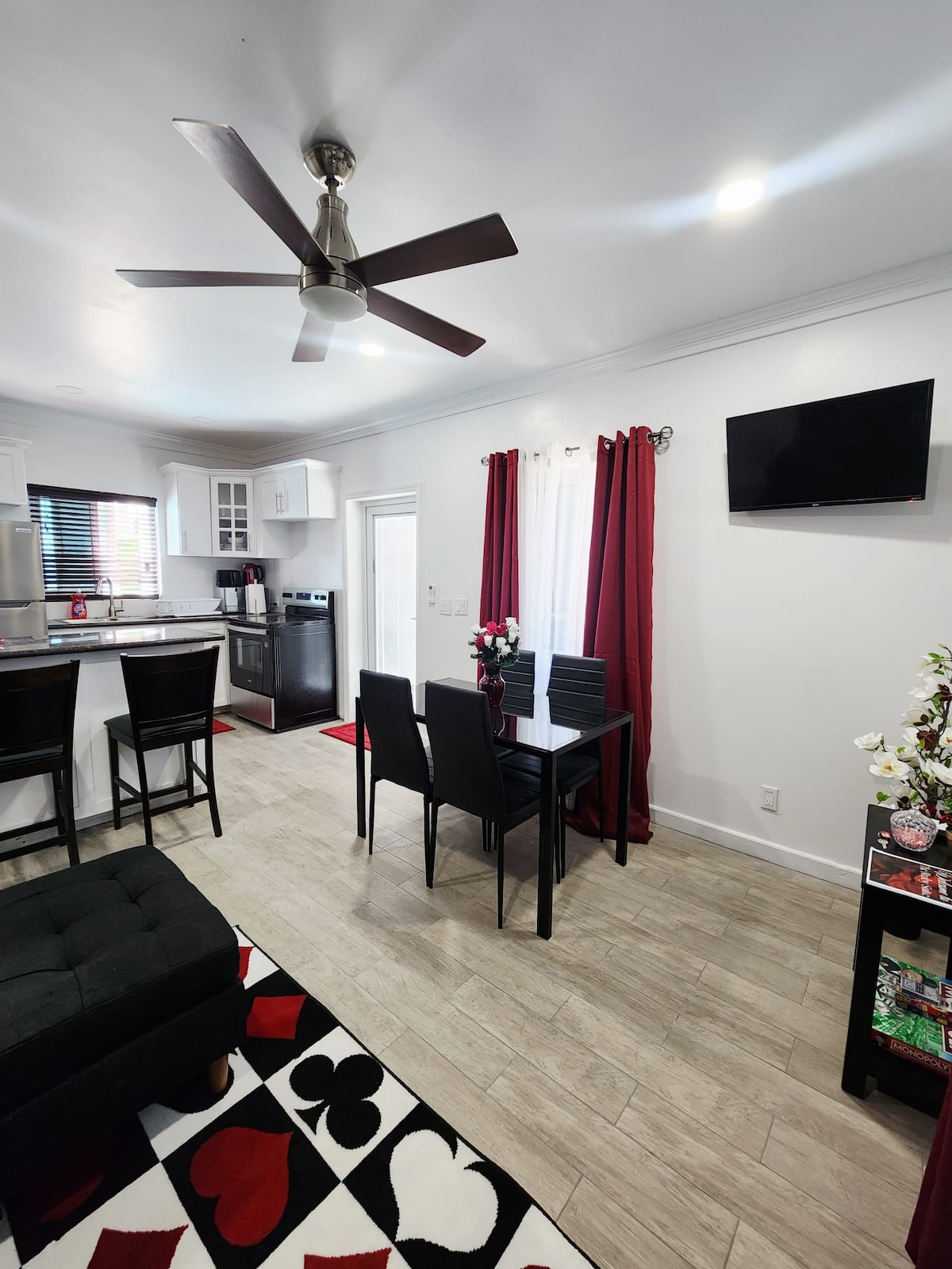 Emerald Suite - Experience a true hidden gem with modern finishes and spacious living. This secluded retreat features 2 baths and comes fully loaded with top-of-the-line appliances. Each room boasts a TV for your entertainment. Located on a hill, it offers the tranquility of a private getaway and is only 7 minutes away from the main airport.