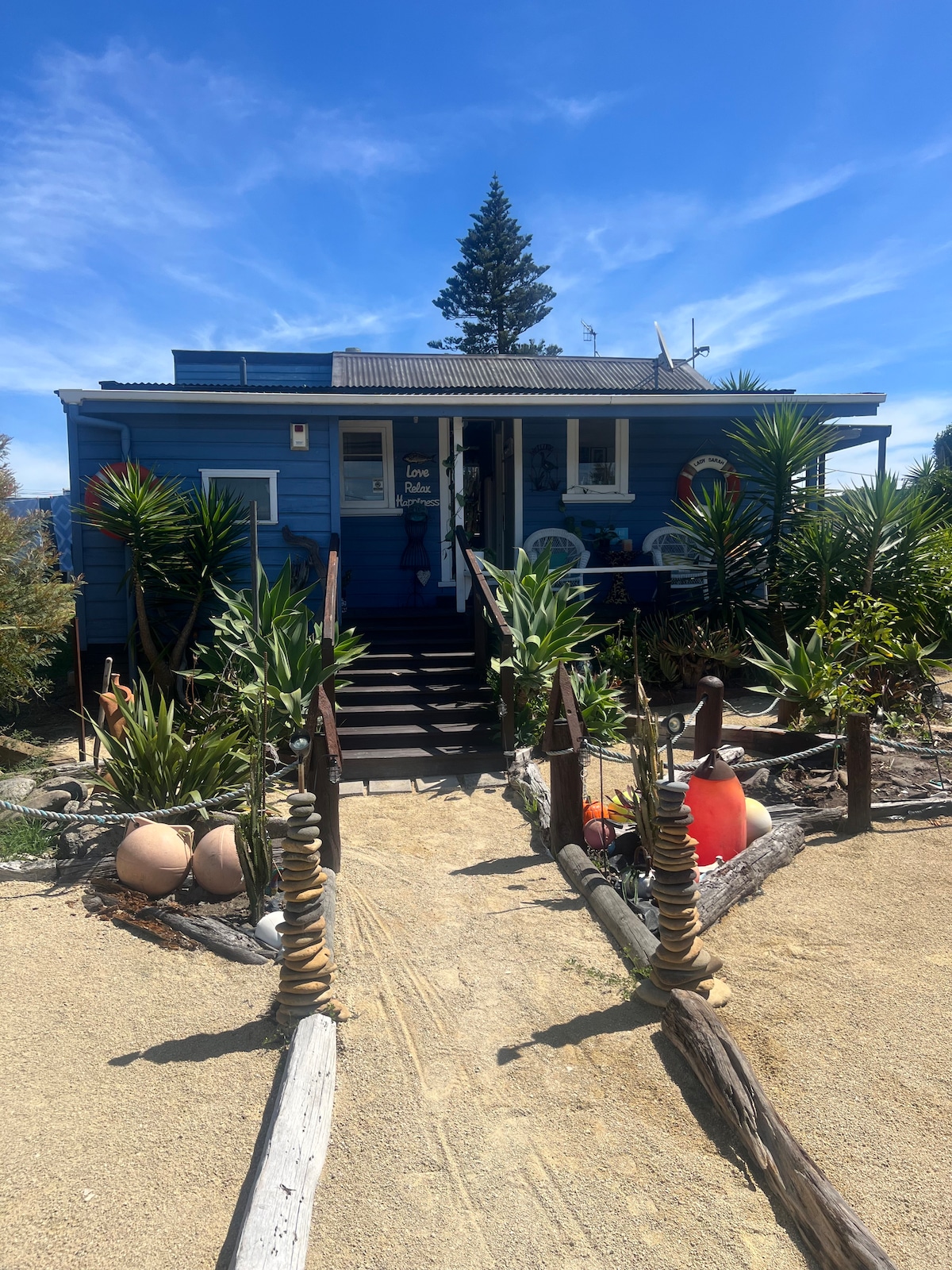 Smješten u uspavanoj ulici na plaži, naći ćete „The Smurf Shack” - Ovo je kompletna nekretnina, a ne Bach na nečijem stražnjem dijelu. Savršen bijeg natrag u sepia uspomene iz prošlosti. Sastoji se od 2 spavaće sobe unutra, spavaće sobe, šetališta, natkrivenog vanjskog salona (s rasvjetom i grijalicom), terase za ručavanje na otvorenom s Weber roštiljem i vanjskim igrama, garaže s frižiderom, izvan tiki bara, sve na velikom potpuno ograđenom dijelu savršenom za djecu i psa.