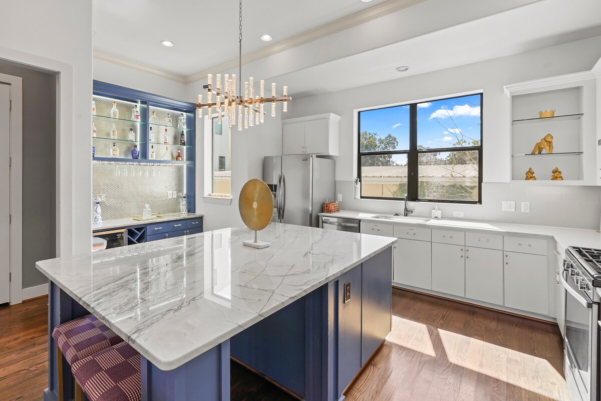 Opustite se u privatnoj spa kadi, uživajte u zalascima sunca na krovu i opustite se u elegantnom, prostranom smještaju udaljenom samo nekoliko minuta od stadiona. Stvaramo posebne uspomene za parove, male grupe i radnike na daljinu. Nalazite se na samo nekoliko koraka od linija metroa, Toyotinog centra, parka Discovery Green, stadiona NRG, akvarijuma Downtown Aquarium i medicinskog centra Texas Medical Center Ključne karakteristike - Pametna brava - Terasa na krovu - Luksuzna kada za kupanje - Potpuno opremljena kuhinja - Smart TV – Wi-Fi munjevite brzine – Prilaz za parkiranje 2 automobila Rezervišite sada i istražite Houston!