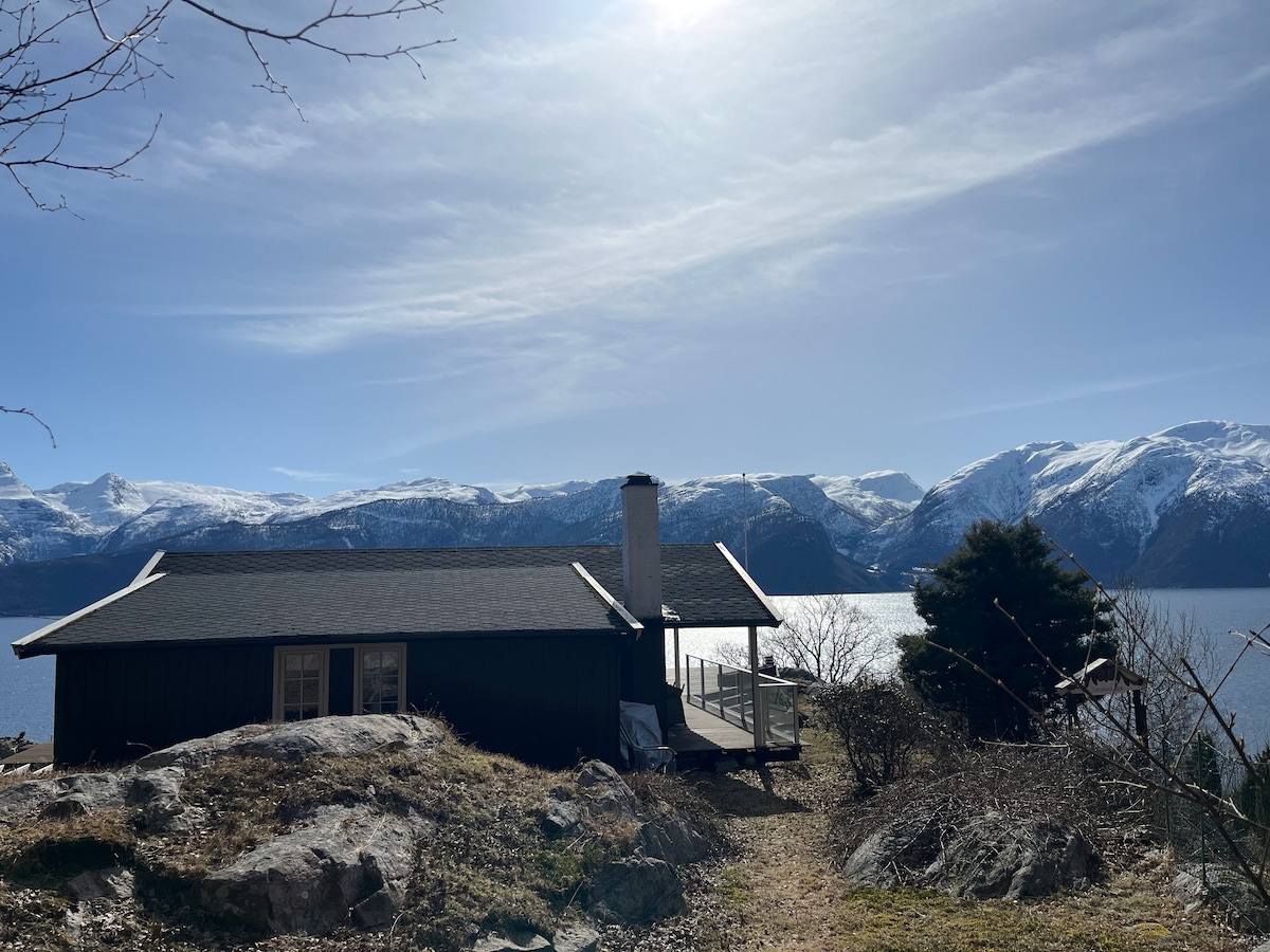 Opustite se s cijelom porodicom u ovom mirnom smještaju. Kuća sa zadivljujućim pogledom na Sognefjord. Odlična terasa pored fjorda. Udoban vrtni namještaj . Besplatno punjenje električnog automobila. 5KW. Brzi Wi-Fi. Sve što vam je potrebno za kratkoročni i dugoročni boravak. Čišćenje je uključeno Posteljina i peškiri su uključeni Zakonska pomoć sa psom.
