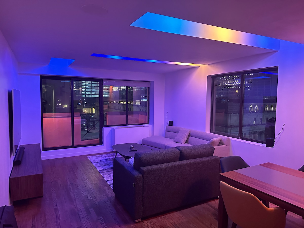 Eden je mjesto gdje se pogled na horizont, moderni luksuz i sadržaji besprijekorno spajaju. Eden je epicentar luksuza i praktičnosti. Eden je nevjerovatan skriveni dragulj u srcu Manhattana. Eden NIJE tipičan Airbnb smještaj u New Yorku. Vrijedni sadržaji: Privatni balkon, OLED TV od 83" i 65", Herman Miller stolna stolica, Casper Nova Hybrid Madrac, Casper jastuci, Vari radni sto, All-House Sonos Sound System, Toto Neorest WC školjka, In-Ceiling Light Therapy Shower, Viking & Sub-Zero Kitchen Appliances