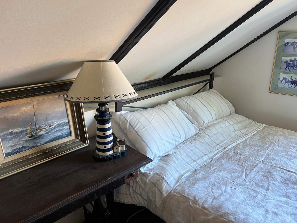 Odsjednite u našoj prekrasnoj spavaćoj sobi u potkrovlju u studiju umjetnika. Zgrada je preuređena štala, izgrađena 1908. godine i renovirana kako bi postala studio ispunjen svjetlom 2010. godine. Spavaća soba u potkrovlju sa spiralnim stepenicama nekada je bila skladište sijena za konje koji su se odmorili ispod. Konji su povukli hitnu pomoć iz 1908. godine. Studio zadržava mnoge originalne karakteristike, ali je ažuriran za udobnost. U dvorištu se nalaze spiralne stepenice, a u dvorištu se nalazi prijateljski granični ovčar