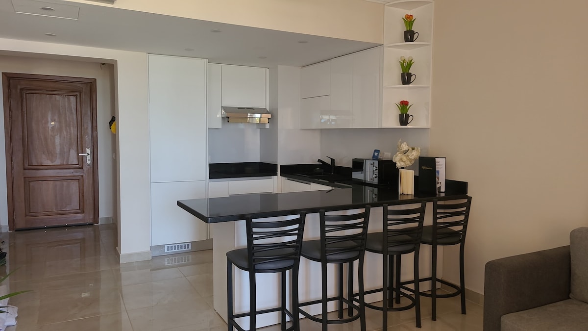 Doživite modernu eleganciju, glamur i dah u najnovijoj marini El Gouna, Fanadir Marina. Uživajte u sadržajima kao što su brzi Wi-Fi, klima uređaj, fen za kosu, kombinacija veš mašine/sušilice, pegla, daska za peglanje i stalak za sušenje i besplatan podzemni parking. Nalazi se u srcu marine Fanadir. Popularni barovi, kafići, restorani, butici, supermarket i frizer udaljeni su samo nekoliko koraka. Pješice do KBC kitesurf & Wingfoil i plaže