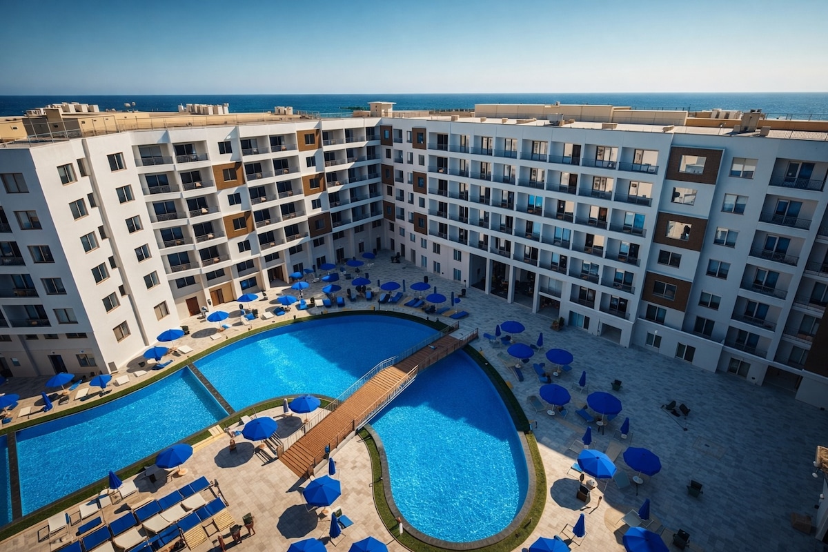 🌊 Luksuzni dvosobni apartman s pogledom na more i bazen – The View Compound, Hurghada Uživajte u opuštajućem i udobnom boravku u ovom prostranom dvosobnom stanu koji se nalazi unutar kompleksa The View, jednog od najpoznatijih kompleksa na plaži u srcu Hurghade. Savršen za porodice ili male grupe, stan nudi zadivljujući pogled na more i bazen, moderan namještaj u evropskom stilu i pristup vrhunskim sadržajima odmarališta. s privatnom plažom i nevjerovatnim ronjenjem s koralnim grebenima i ribama 🤿🐠