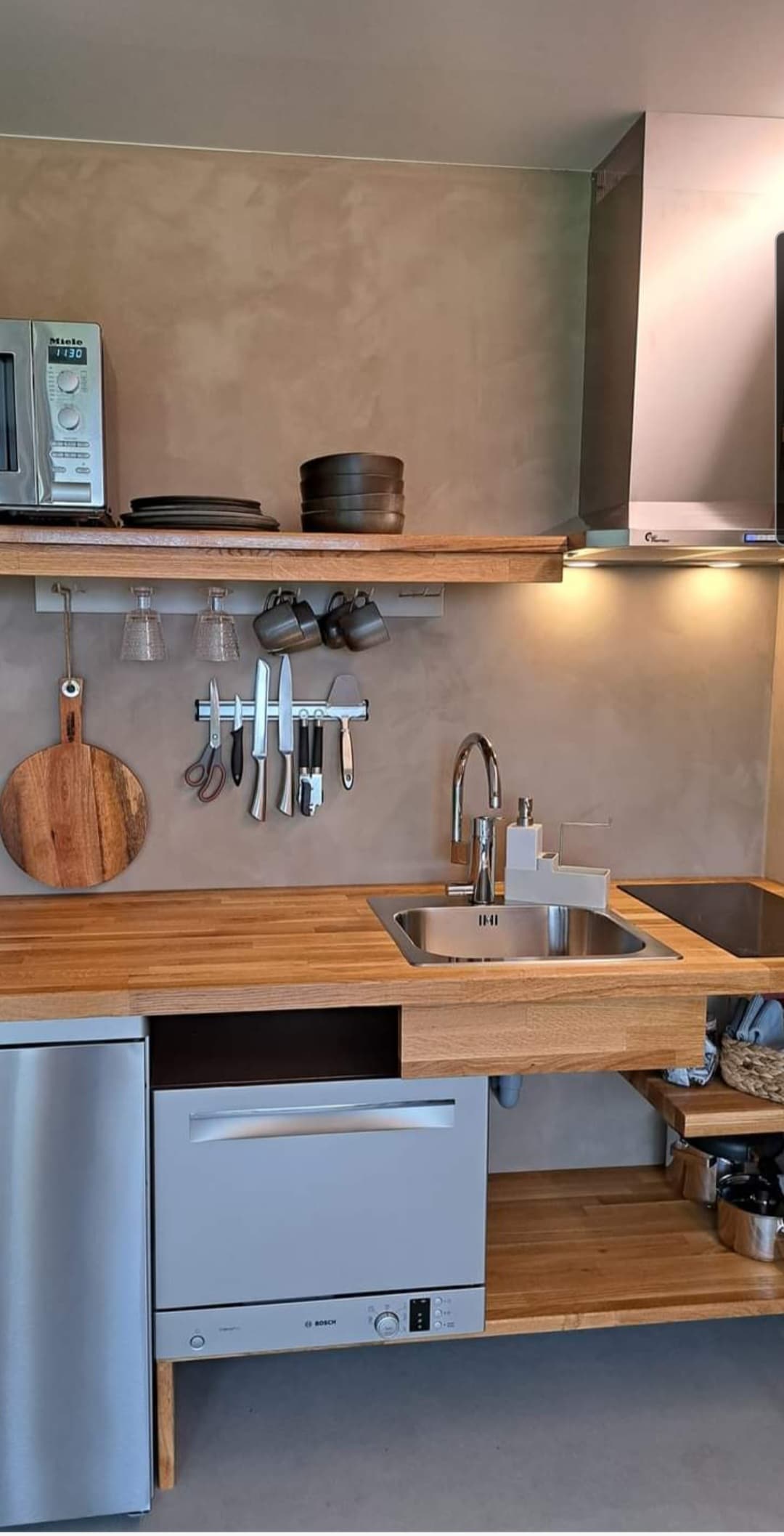 Svijetla i moderna koliba. Novoizgrađena 2018. godine. Reflektori na stropu, frižider, mašina za pranje sudova, šporet i ploče za pečenje. Trpezarijski sto sa mjestom za 6 osoba. Kablovska televizija i kauč. Popločano kupatilo s tušem s efektom kiše. 2 spavaće sobe s bračnim krevetom plus potkrovlje s prostorom za 2-3 osobe. Pogled na planine i more. Terasa s vanjskim namještajem i roštiljem.